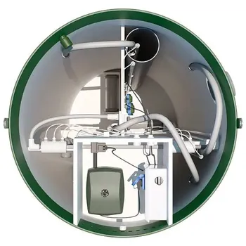 Автономная система канализации «Тополь - 9 ПР» предназначена для эффективной очистки бытовых сточных вод в загородных домах и на дачах. Она рассчитана на обслуживание семьи численностью от трех до девяти человек и подходит как для постоянного проживания, так и для сезонного использования. Септик «Тополь» отличается высоким качеством очистки и соответствует современным экологическим стандартам. Очищенная вода может сбрасываться на рельеф, а осадок после очистки можно применять в качестве удобрения для неплодоносящих культур.